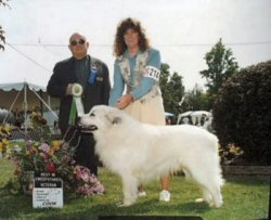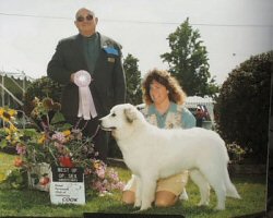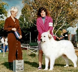 | Snowfire Pompier Cowgirl age 6 mos. Best of Opposite Sex to Best in Sweepstakes GPCC Specialty 1999 |