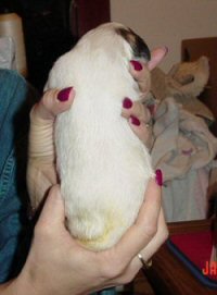 All the marked pups have symmetrical markings. This is the first female. We just photographed the females on the first night, because Debi wanted a record of "her" pup, whichever one it was going to be..