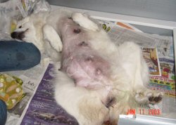 Here he sprawls full length in the whelping box.